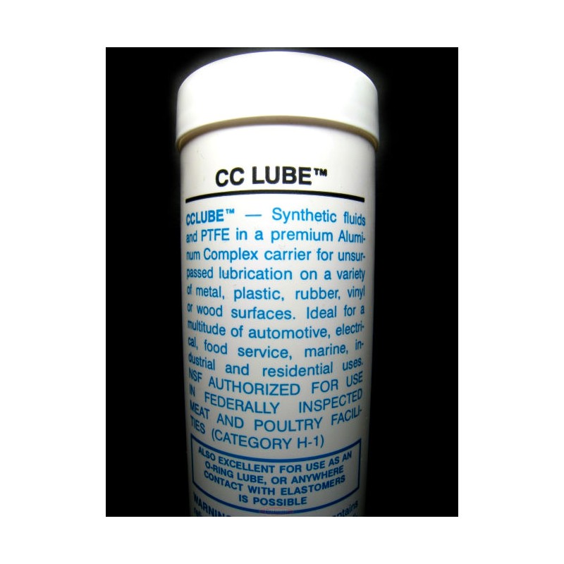 CC Lube is clear, clean, colorless, non-staining, non-drying, naturally biodegradable and contains PTFE (Teflon). Top quality additives provide extreme pressure properties, water resistance and high lubricity values .  Exceptional temperature range of -18°C (0°F) to 204° (400°F).