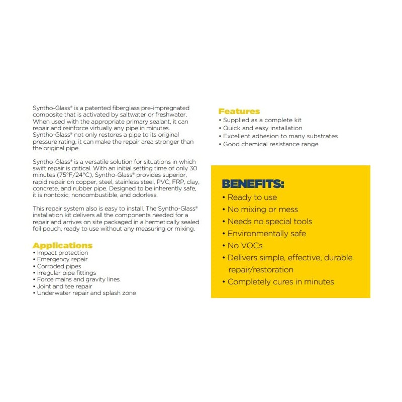 Wishlist compare Aperçu rapide -20% Syntho-Glass Pipe Repair Wrap 2" x 5' 135,95 $ 108,76 $ -20% Ajouter au panier